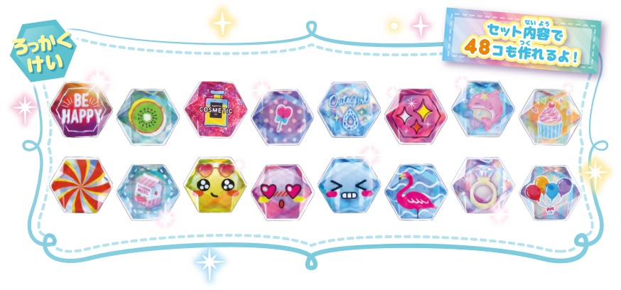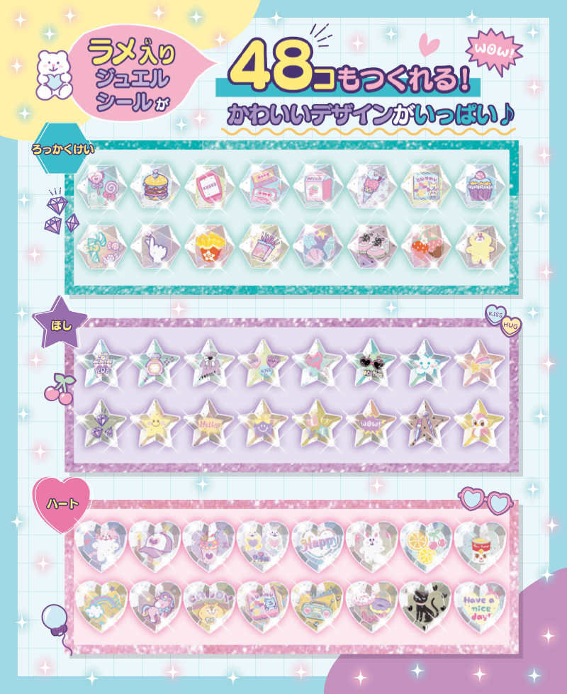 ラメ入りジュエルシールが全部で48個も作れちゃう!