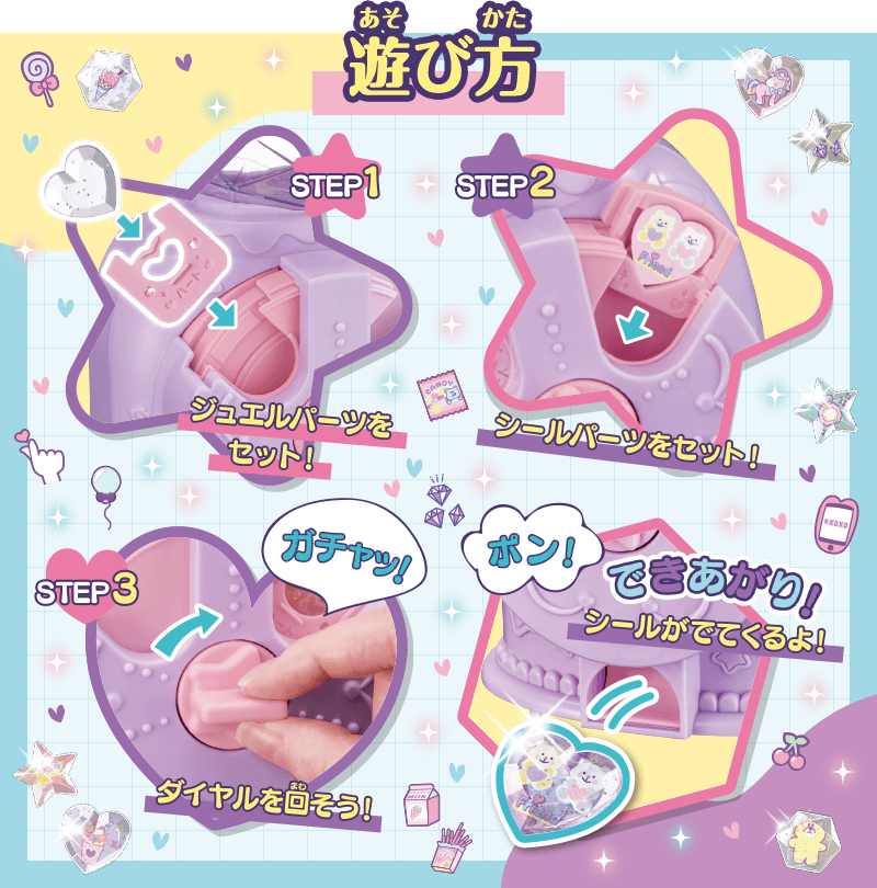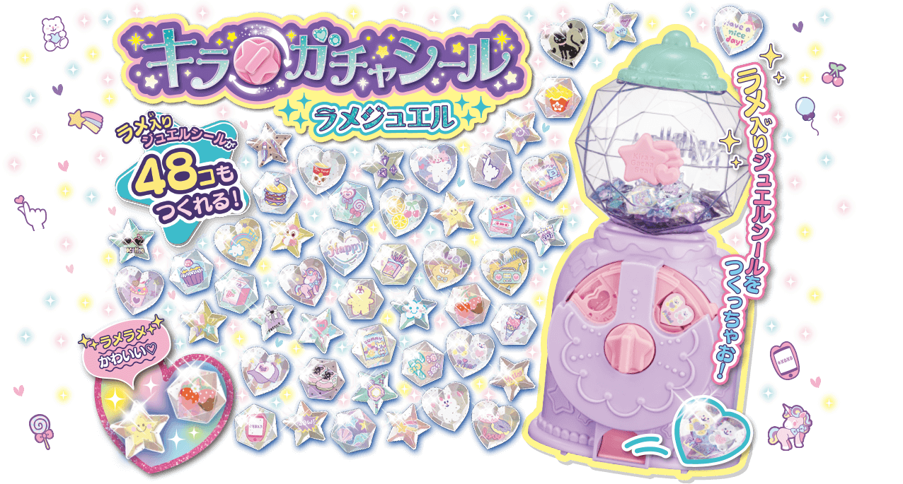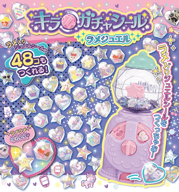 ガチャギミックで簡単にシールが作れる『キラ★ガチャシール』のジュエルパーツがラメ入りになってさらにキラキラ感アップ!