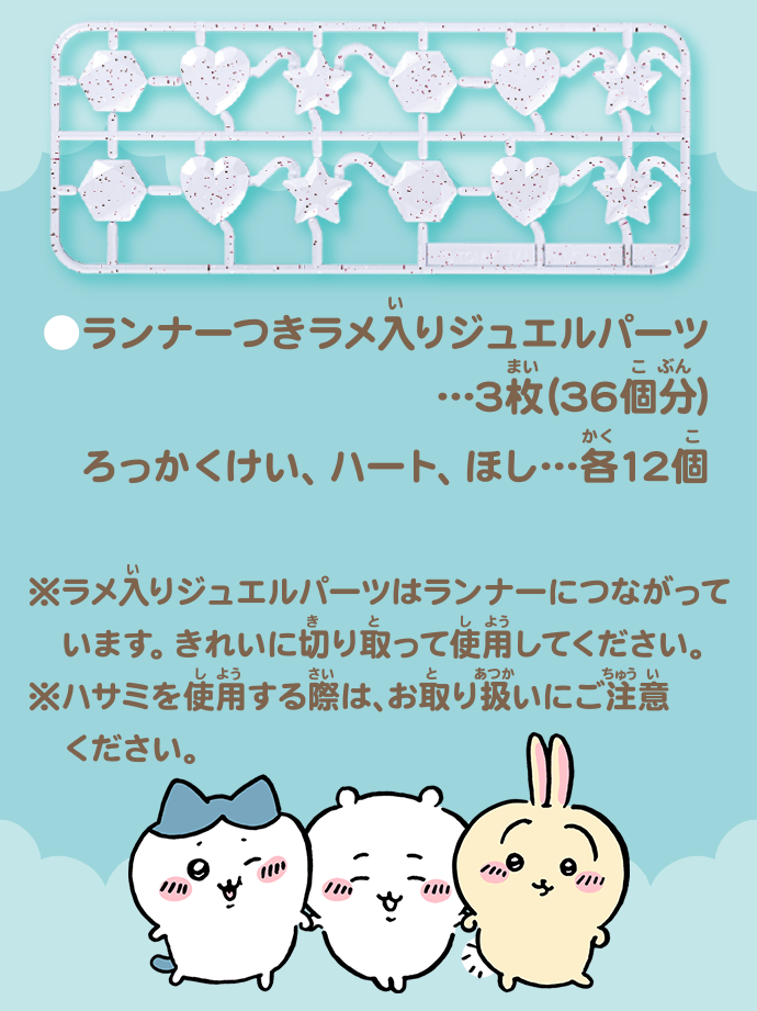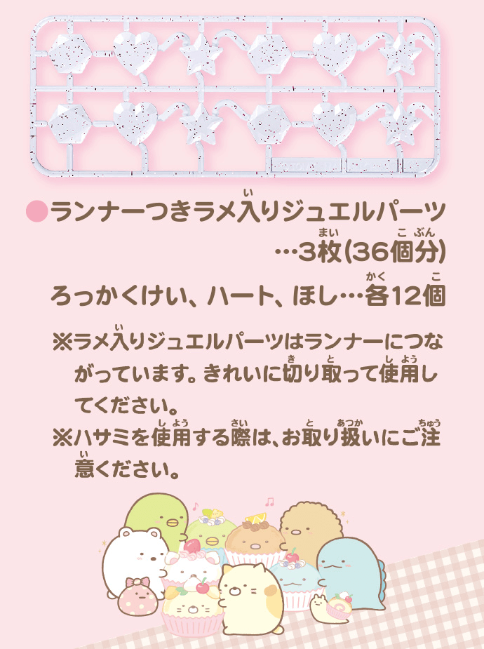 ※ジュエルパーツはランナーについています。きれいに切り取って使用してください。※ハサミを使用する際は、お取り扱いにご注意ください。