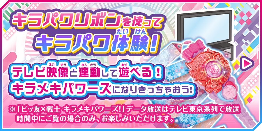 「ビッ友ダンス」の音楽が収録されているので、音楽に合わせてキラパワリボンを