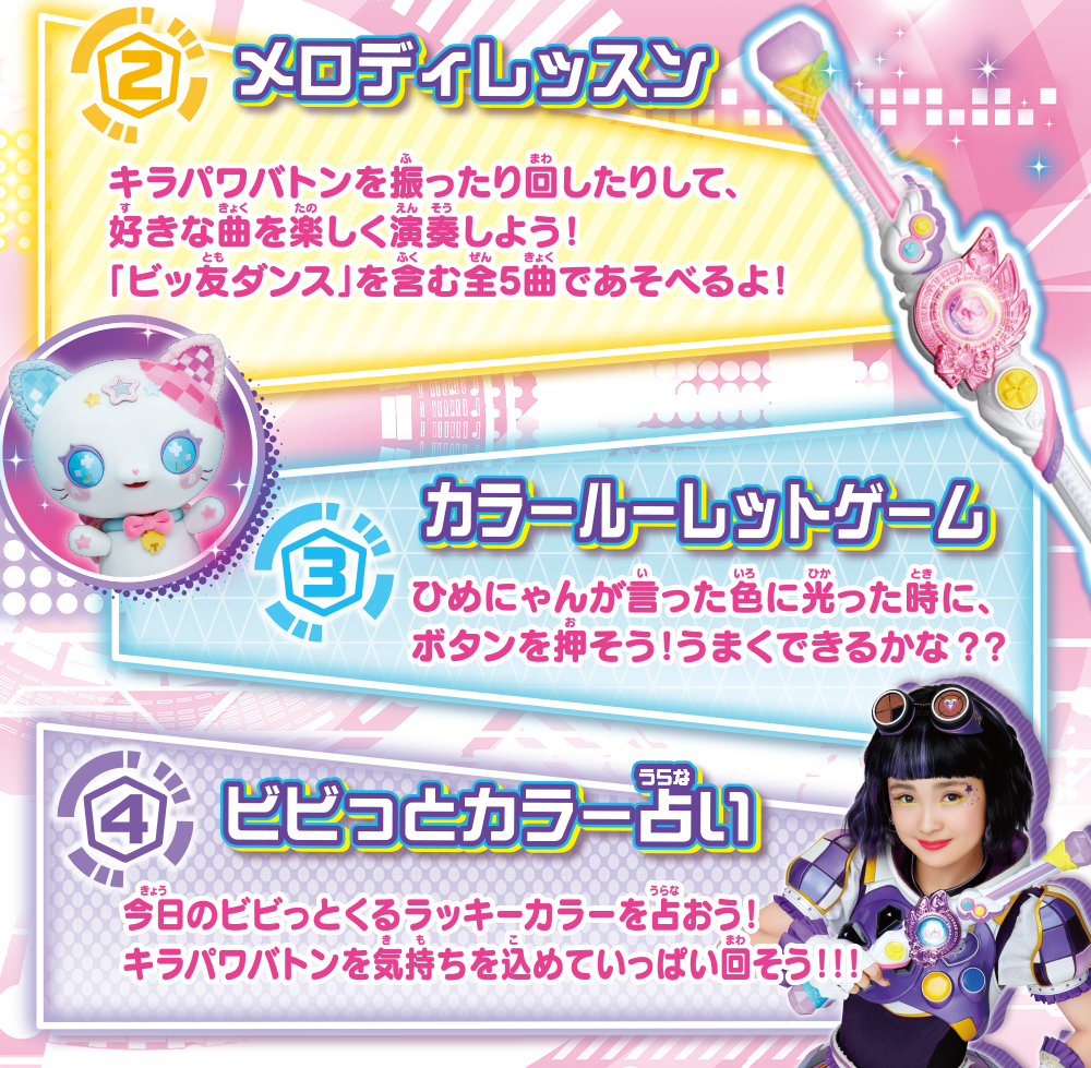 「ビッ友ダンス」の音楽が収録されているので音楽に合わせてキラパワバトンを使った