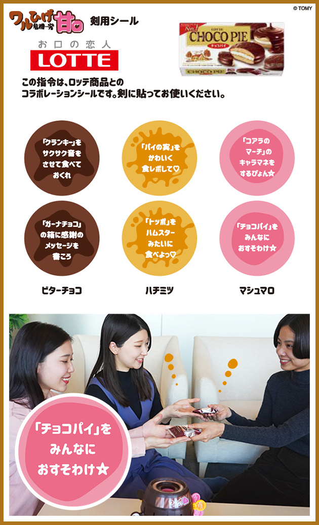 ロッテ・カルビーとのコラボレーションシールが入っている!