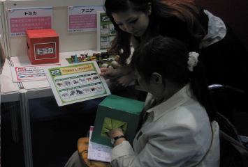 東京ビッグサイト東ホール全館で開催された国際福祉機器展の「目からウロコ展」にてタカラトミーの「トミカ」と「アニア」の 手探り体験ゲームを実施。