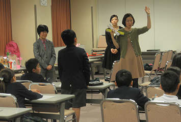 来場した小学生に、様々な工夫が施された共用品・共遊玩具を触ってもらい、どこが障害者にとって“配慮されている点“を探してもらいました。