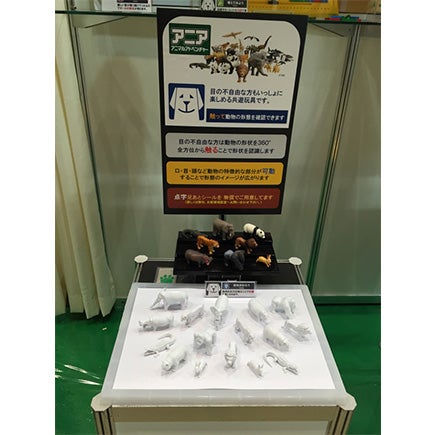 今年はおもちゃ大賞 共遊玩具部門2015年度大賞を受賞した「JOUJOU みつけてみよう!いろキャッチペン」と、盲導犬マークのコーナー、うさぎマークのコーナーの3カテゴリーに 分けてご紹介。