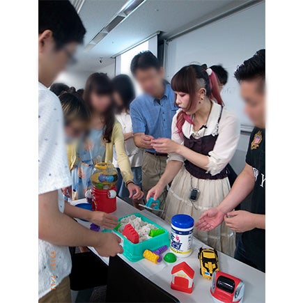 講義を聞くだけでなく、実際に最新の共遊玩具にも触れてもらいました。