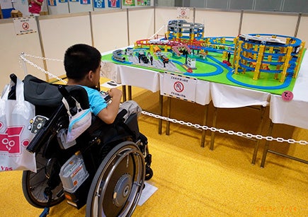 今まで障害があって、トミカ博やプラレール博に行きたくても行けなかったという子どもたちが自由に遊べるということで、5日間で計1,460人のご来場があり、多くのお客様に楽しんで頂きました。