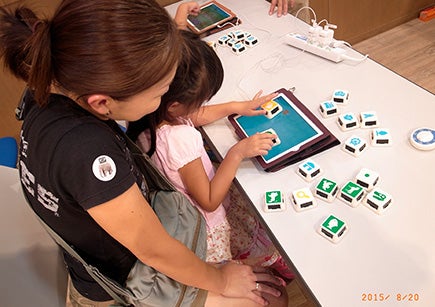 横浜市リハビリテーション事業団様と合同で、知的障害や発達障害のある子どもも一緒に遊べる遊び体験イベントを、ヨコハマ・ヒューマン&テクノランンド2015にて初出展してきました。