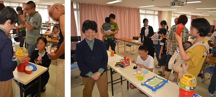 お子さんたちといっしょに受講してくださったかたも多く、実際におもちゃを触っていただきながら、にぎやかで楽しい講座をすることができました。皆さんから、「おもちゃにいろいろな工夫があることに初めて気づいた」「今回知ったことを今後の仕事に活かしていきたい」などの感想をいただきました。