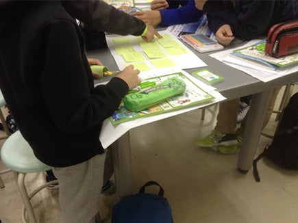その後、みんながよく知っている「人生ゲーム」の開発手順を、開発者自身が説明したビデオから学び、「環境に配慮した人生ゲーム」と「目の見えない人もいっしょに遊べる人生ゲーム」を、グループに分かれて、ステップを踏みながら考えてもらいました。