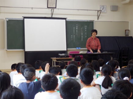 多摩市立北諏訪小学校4年生3クラス87名のみなさんに、視覚障害のある人の日常生活についてお話をしました。