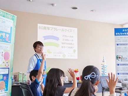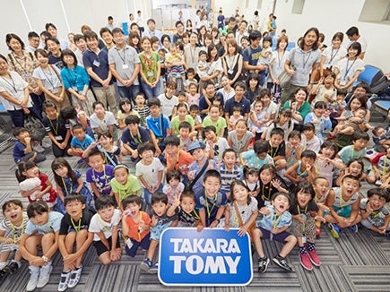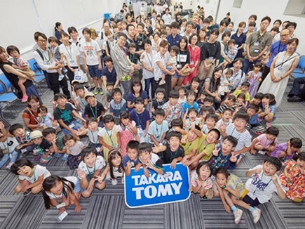 タカラトミーグループでは、家族の大切さや職場の理解を深めるために年1回ファミリーデーを開催し、年齢別に分かれて様々な職場体験をしてもらっています。