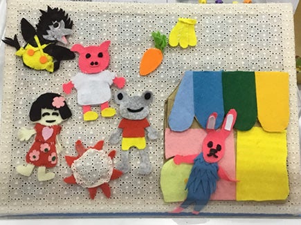 この作品はフェルト材で作られたキャラクタードールたちを使ってのおままごとハウス遊びです。