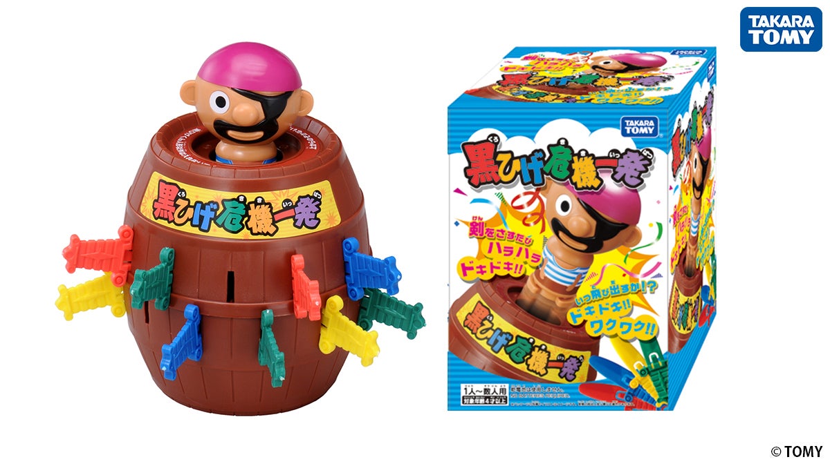 黒ひげの人形をセットした樽の穴に順番に剣を差込み、飛び出させた人が負けというハラハラドキドキのパーティーゲームです。