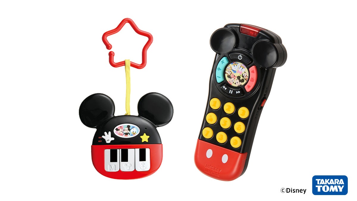 3つのキーを押して5種類の楽しいメロディやディズニーのキャラクターボイスを聴くことのできる「Dear Little Hands おでかけミニピアノ ミッキー&フレンズ」と、愉快な効果音やディズニーキャラクターたちのおしゃべりがたくさん入ったリモコン型のおもちゃ「Dear Little Hands いっぱいおしゃべりまねっこリモコン ミッキー&フレンズ」をご紹介しています。