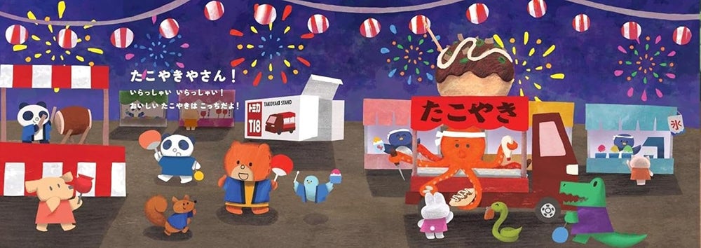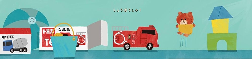 子どもが大好きなトミカが次々と登場するほか、これまでの絵本シリーズに登場したおもちゃもページのどこかに隠れています。