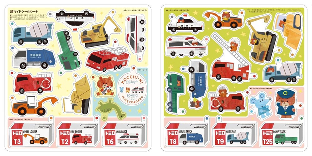 シールは全部で31枚あり、救急車、消防車、パトカー、清掃車など人気の車が大集合!
