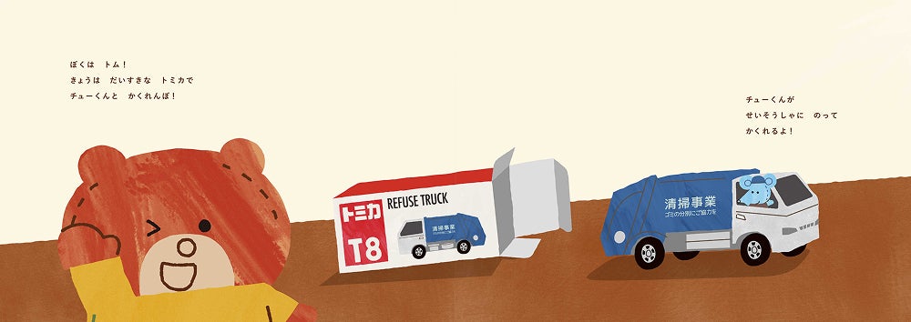 第3弾となる「トミカでかくれんぼ」は、子どもが見ていない間に、お家で起こっているかもしれない素敵な物語。
