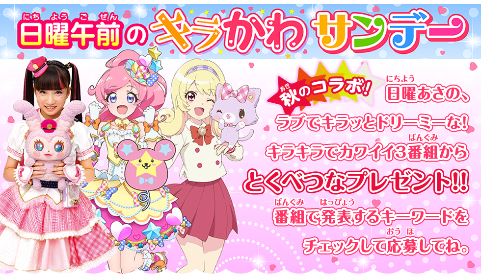 日曜朝のガールズ3番組がコラボ!「日曜午前のキラかわサンデー」キャンペーンを実施します!