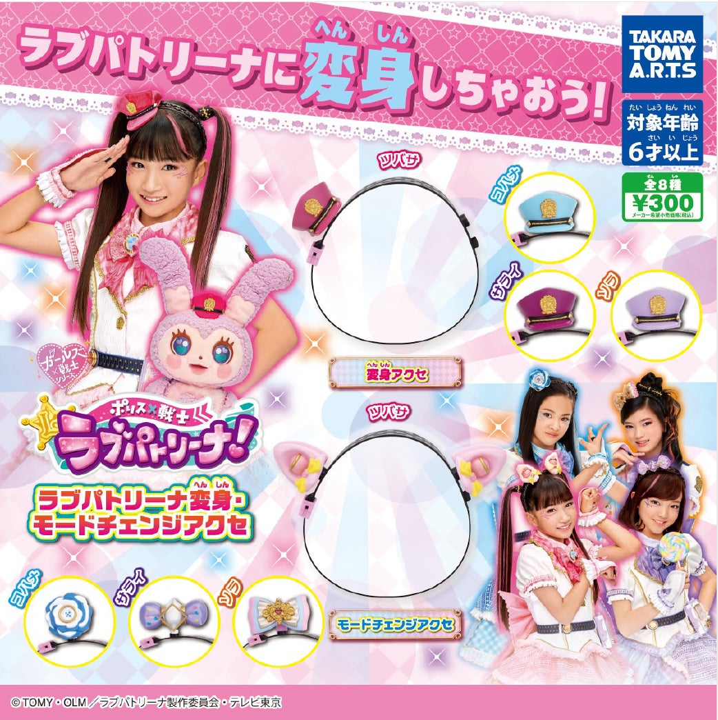 ラブパトリーナになれちゃう?!ガチャにラブパトリーナが変身・モードチェンジしたときのコスチュームカチューシャアクセサリーが登場。全種類揃えたくなること間違いなし!本体サイズは約3〜6cm