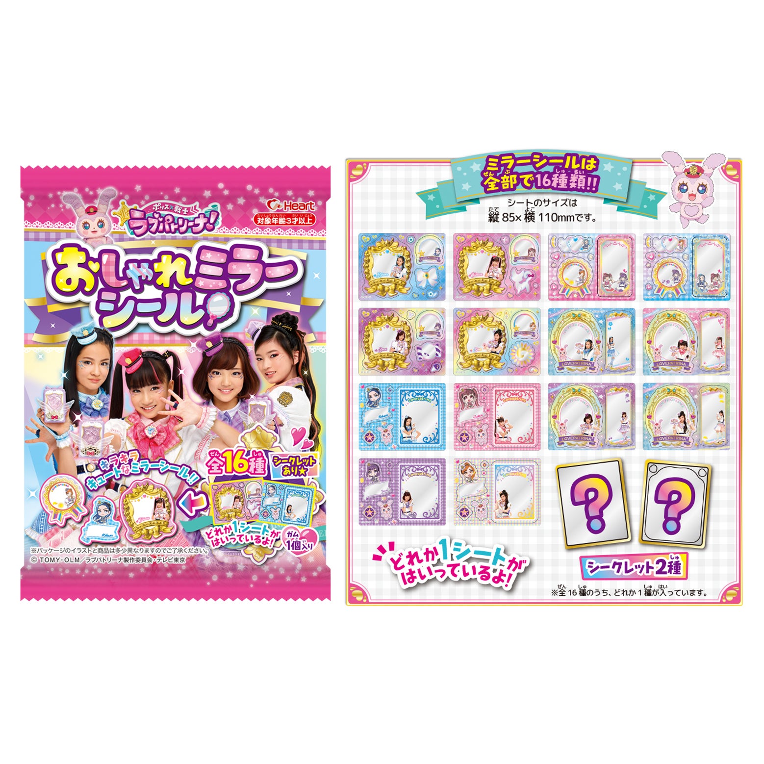 ラブパトリーナたちがデザインされた、鏡風のおしゃれなシール♪全16種類。シークレットもあるよ!