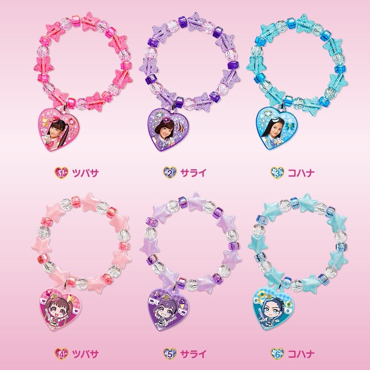 ツバサ、サライ、コハナのかわいいブレスレットは全部で6種類。腕に付けたり、カバンや髪をかざっても◎♪