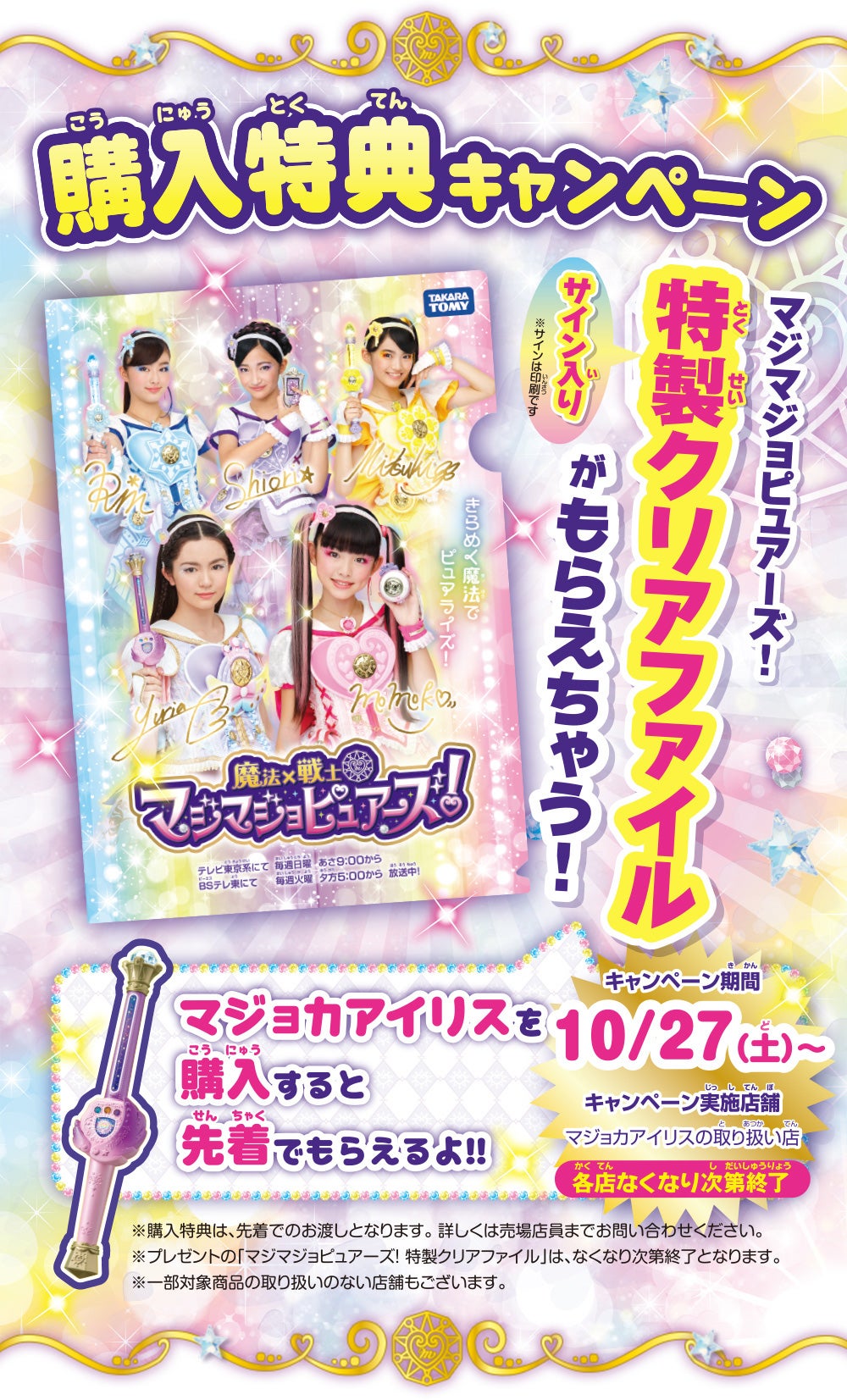 マジョカアイリスをお買い上げの方に、先着で【マジマジョピュアーズ!特製クリアファイル】を差し上げます!