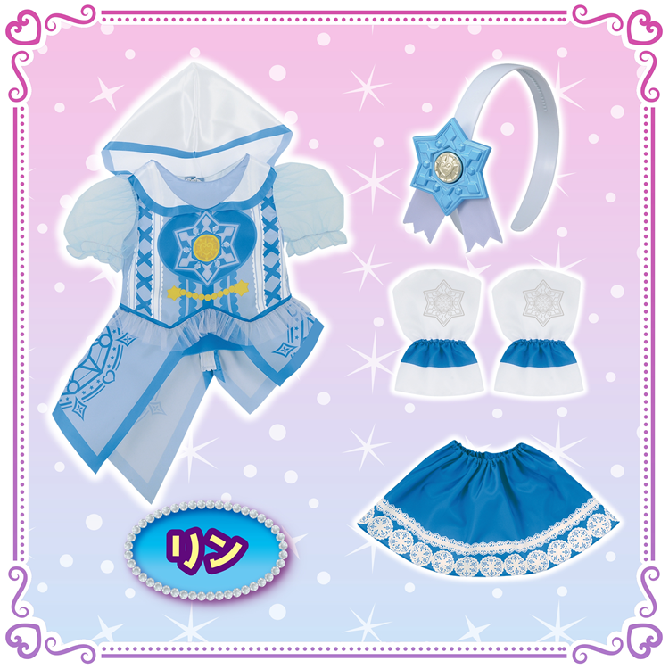 リンの変身時のコスチュームです。トップス、スカート、アームカバーにカチューシャも付属しているので、すぐに「マジマジョピュアーズ!」リンになりきることができます。