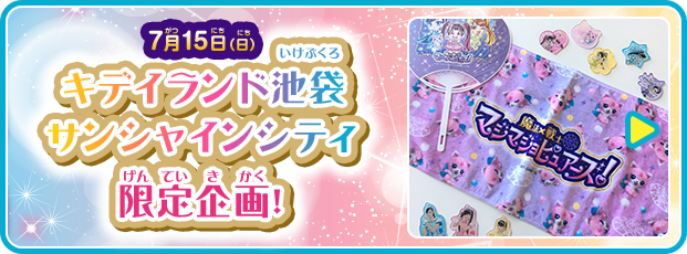 7月15日当日、トイザらス・ベビーザらス池袋サンシャインシティ店またはキデイランド池袋サンシャインシティ店にてタカラトミーから発売されている「マジマジョピュアーズ!」の商品を以下の対象店舗で3,000円(税込)以上お買い上げの方に『直筆サイン入りポスター引換券』を先着で合計800名様にお渡しいたします。