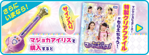 - ※購入特典「直筆サイン入りポスター」をお渡し時の握手、ハイタッチなどマジマジョピュアーズ!本人たちとの接触や写真撮影などは禁止しておりますのでご了承ください。