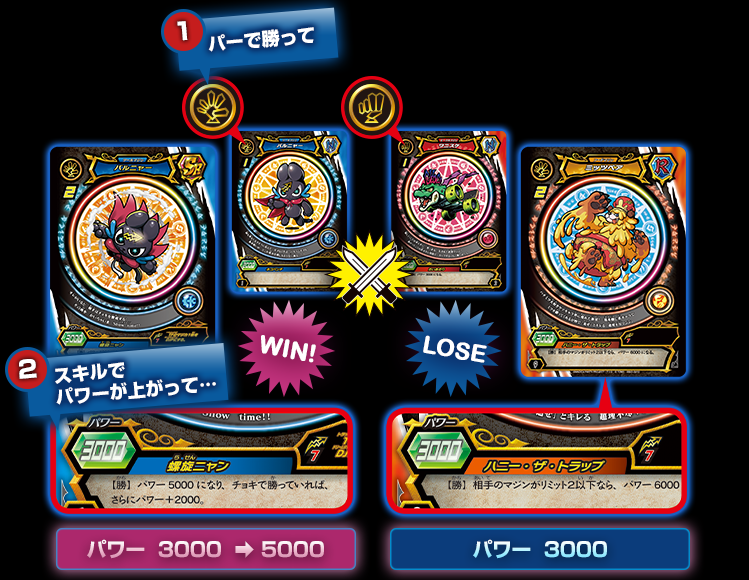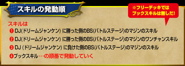 スキルに【勝】と書いてあるマジンのスキルはDJ(ドリームジャンケン)で勝ったときに発動できるぞ!
