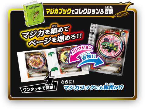 マジカを収納し,バトルでも使える! マジカのためのファイル! リフィルのワンタッチ簡単着脱が可能で,マジカブックから直接マジカを召喚できます! また,バトル中にマジカブックのブックスキルを発動することでバトルを優位に進められます!