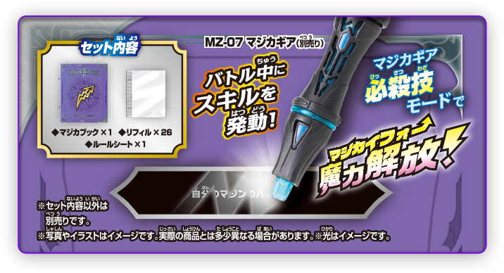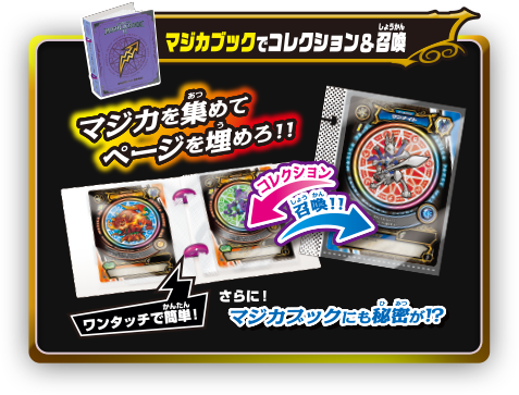 マジカを収納し,バトルでも使える! マジカのためのファイル! リフィルのワンタッチ簡単着脱が可能で,マジカブックから直接マジカを召喚できます! また,バトル中にマジカブックのブックスキルを発動することでバトルを優位に進められます!
