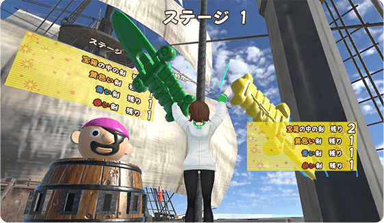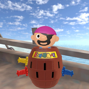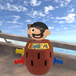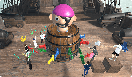 メタバース空間内で、オンラインでつながっている相手と「黒ひげ危機一発」で遊べます