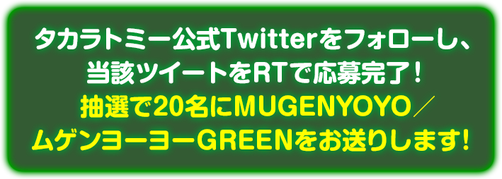 フォロー&このツイートをRTで、抽選で20名様に11月3日(木)に新発売のムゲンヨーヨー グリーンをプレゼント!