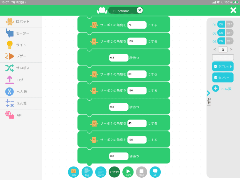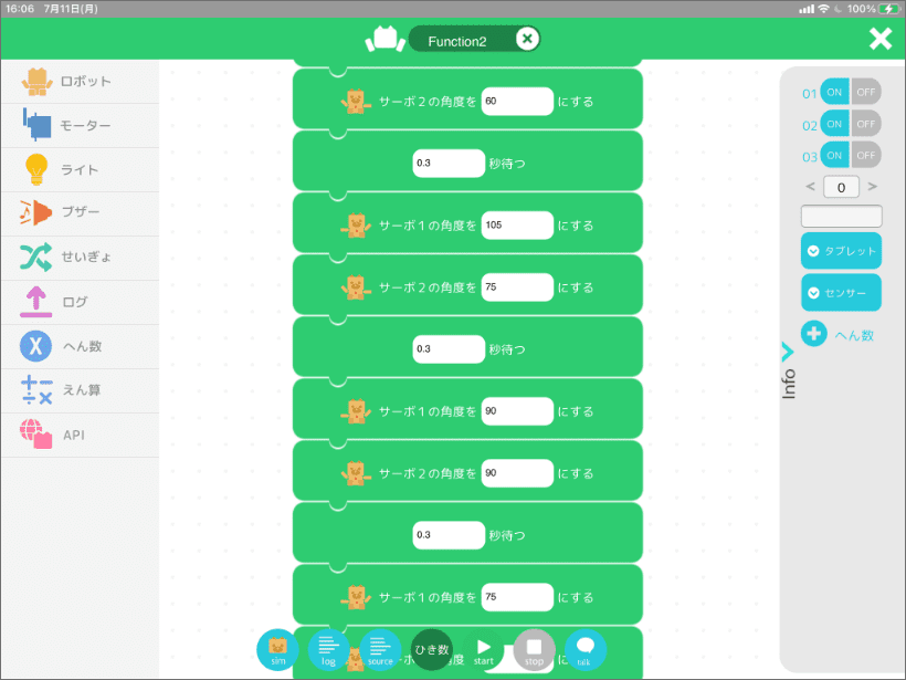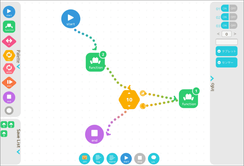 embotアプリを立ち上げて、以下のプログラムを入力してみよう!