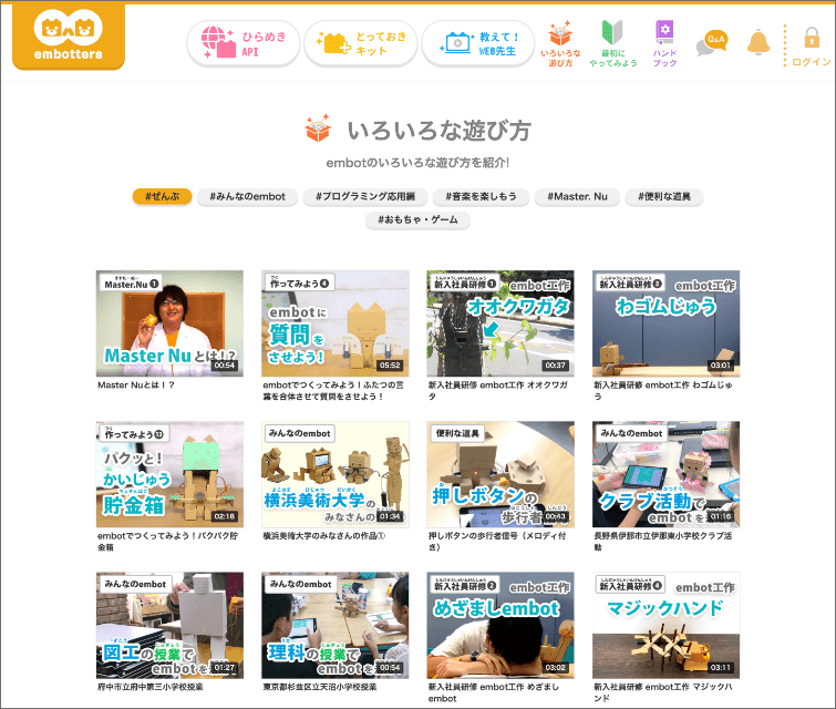 「embotすみっコぐらしをつくろう!ダンボールキット」では、パーツを選んで5つのキャラクターのうちどれか1つを作ることができます。embotスターターキットの電子工作パーツと組み合わせると、プログラミングで動くあなただけのすみっコぐらしキャラクターの完成です!