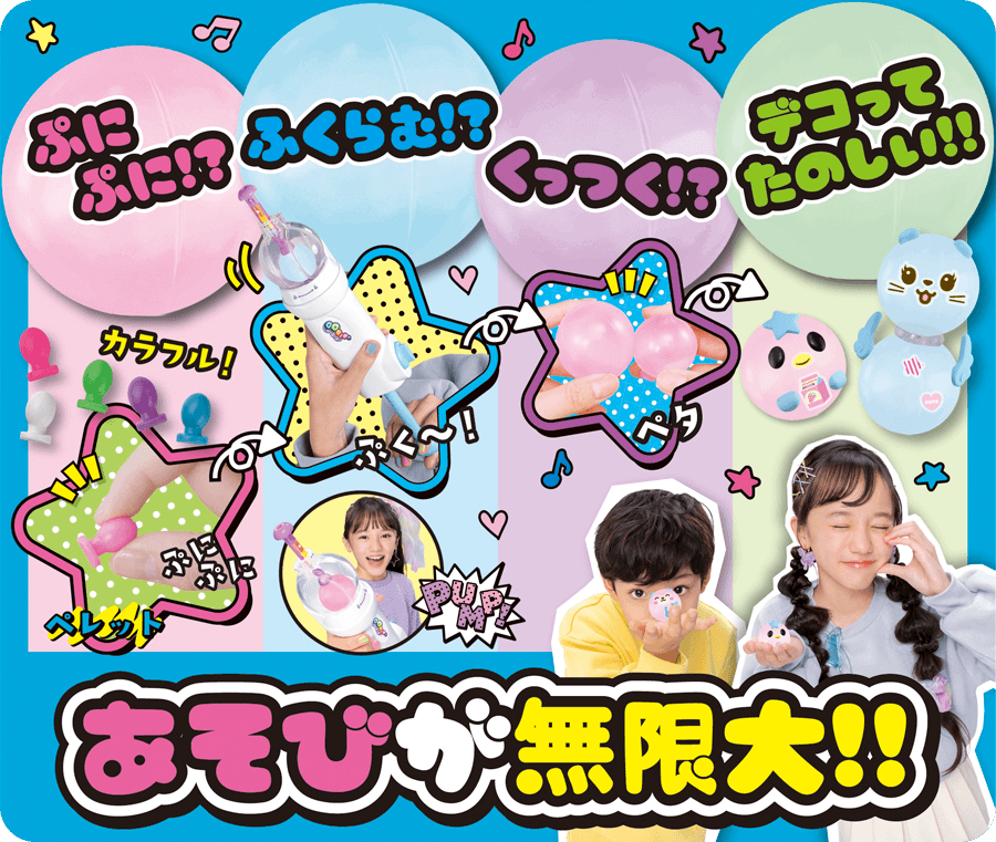 くっつくふうせんになるのは、ぷにぷにな感触のカラフルなペレット!?