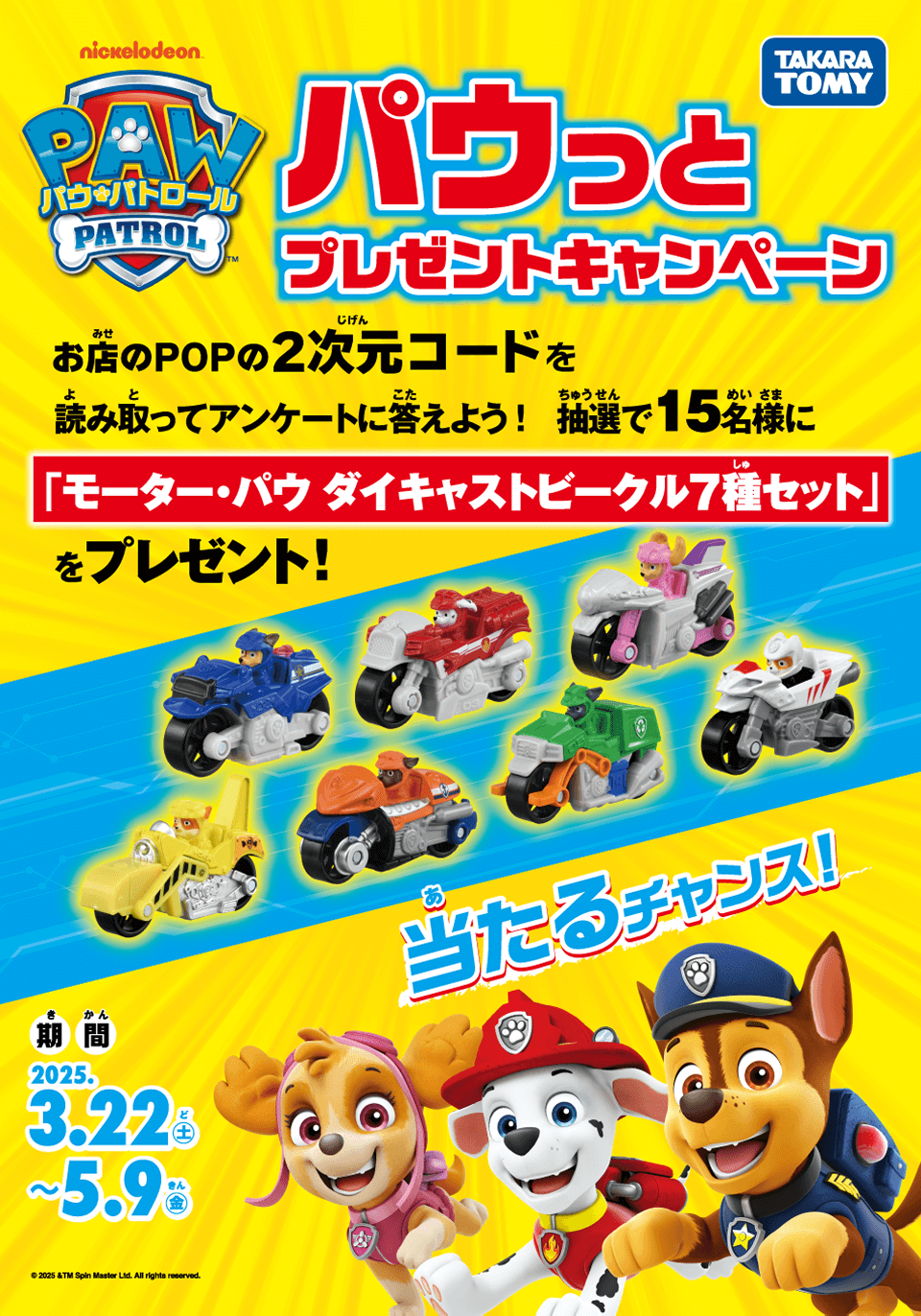 - パウ・パトロール公式X(旧Twitter)アカウント(@pawpatrol_jp)をフォローしてください。