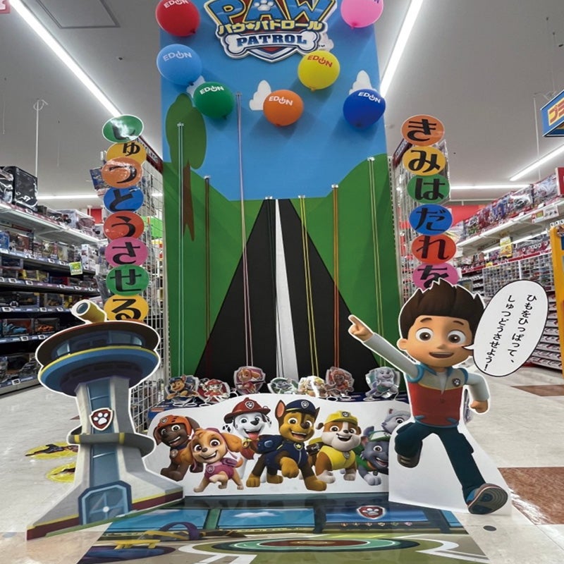 エディオン熊本本店様 ビークル型の什器にパウ・パトロールが集合して迫力満点!