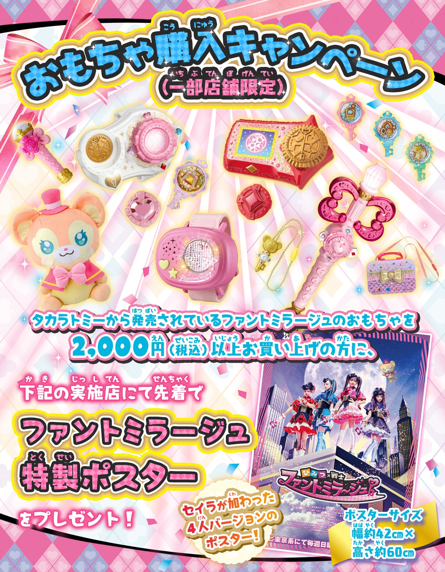 タカラトミーから発売されているファントミラージュのおもちゃを2,000円(税込)以上お買い上げの方に、下記店舗の玩具売場にて先着で【ファントミラージュ特製ポスター】を差し上げます!