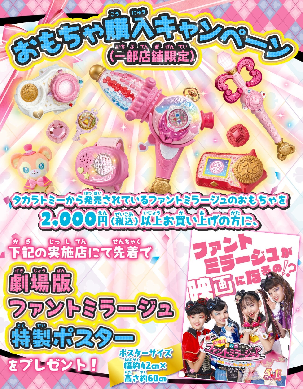 下記店舗の玩具売場にて先着で【劇場版ファントミラージュ特製ポスター】を差し上げます!■キャンペーン期間 及び 実施店舗