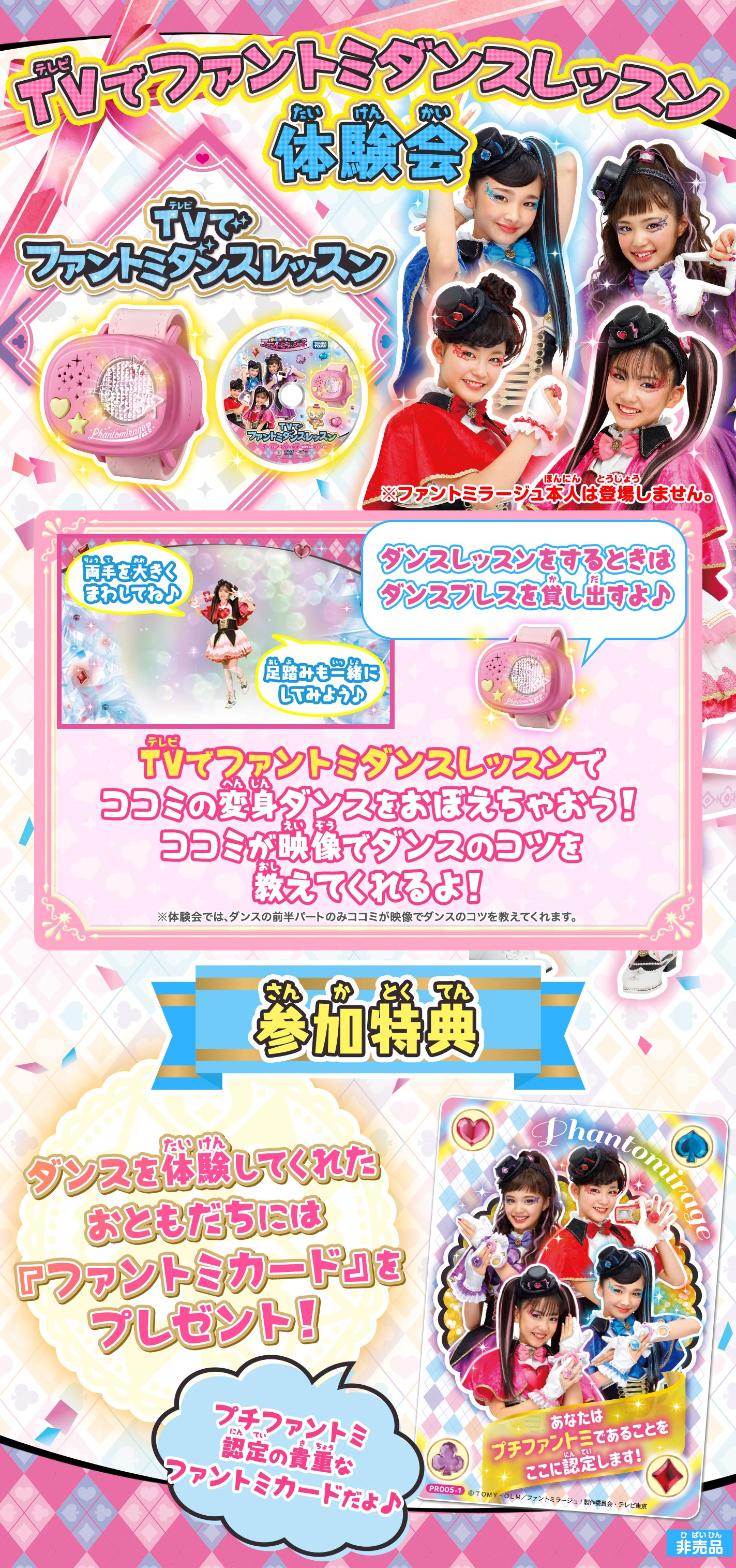 TVでファントミダンスレッスン体験会開催!TVでファントミダンスレッスンでココミの変身ダンスをおぼえちゃおう!ダンスを体験してくれたおともだちには『ファントミカード』をプレゼント!