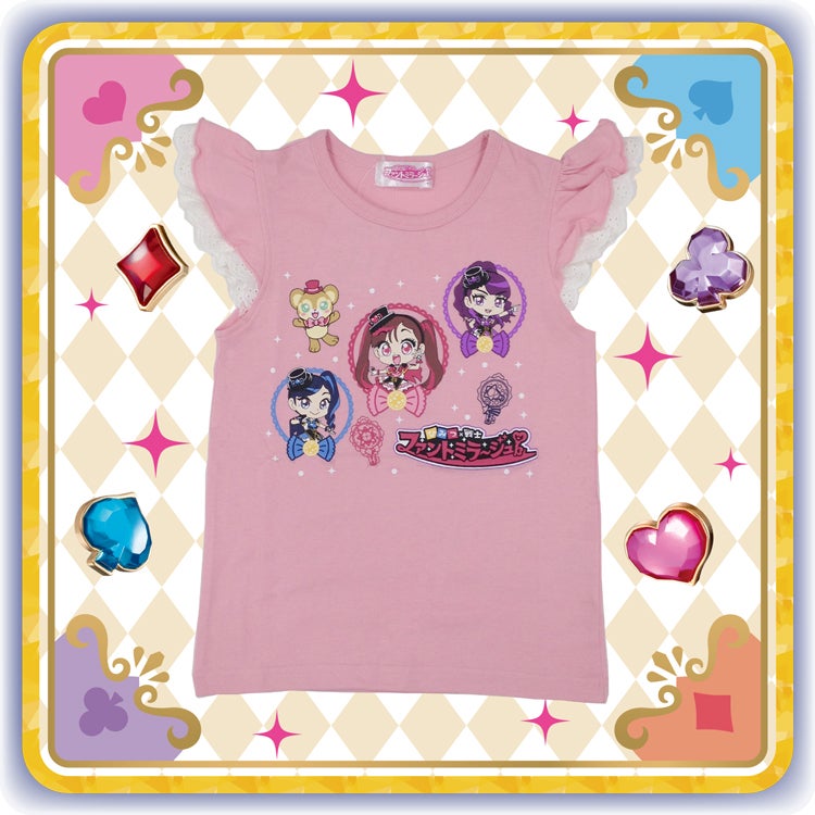 ファントミとくまちぃのイラストがプリントされたかわいいTシャツ!レースの付いた2段フリル袖が女の子らしさをUP♪