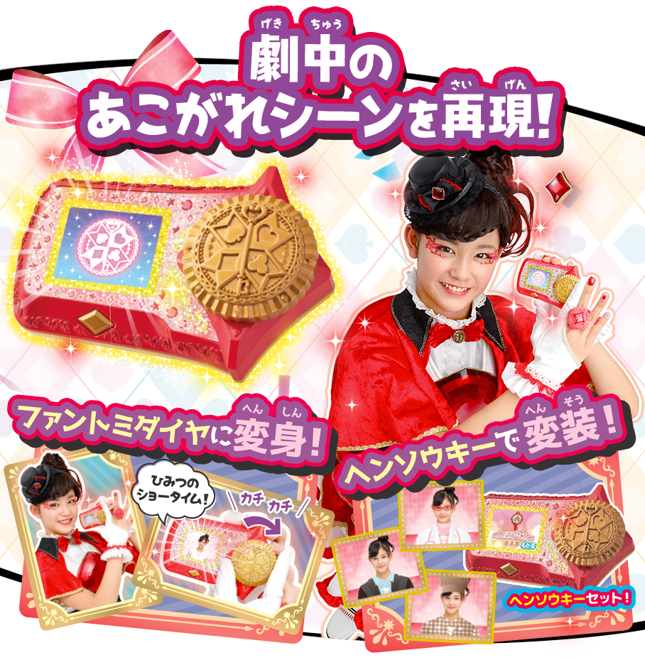 劇中のあこがれシーンである「変身シーン」や「変装シーン」を「映像」「セリフ」「BGM」で再現しています。