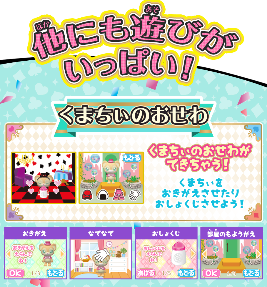 他にも「くまちぃのおせわ」「ファントミラージュとのおしゃべり」「ミニゲーム」や
