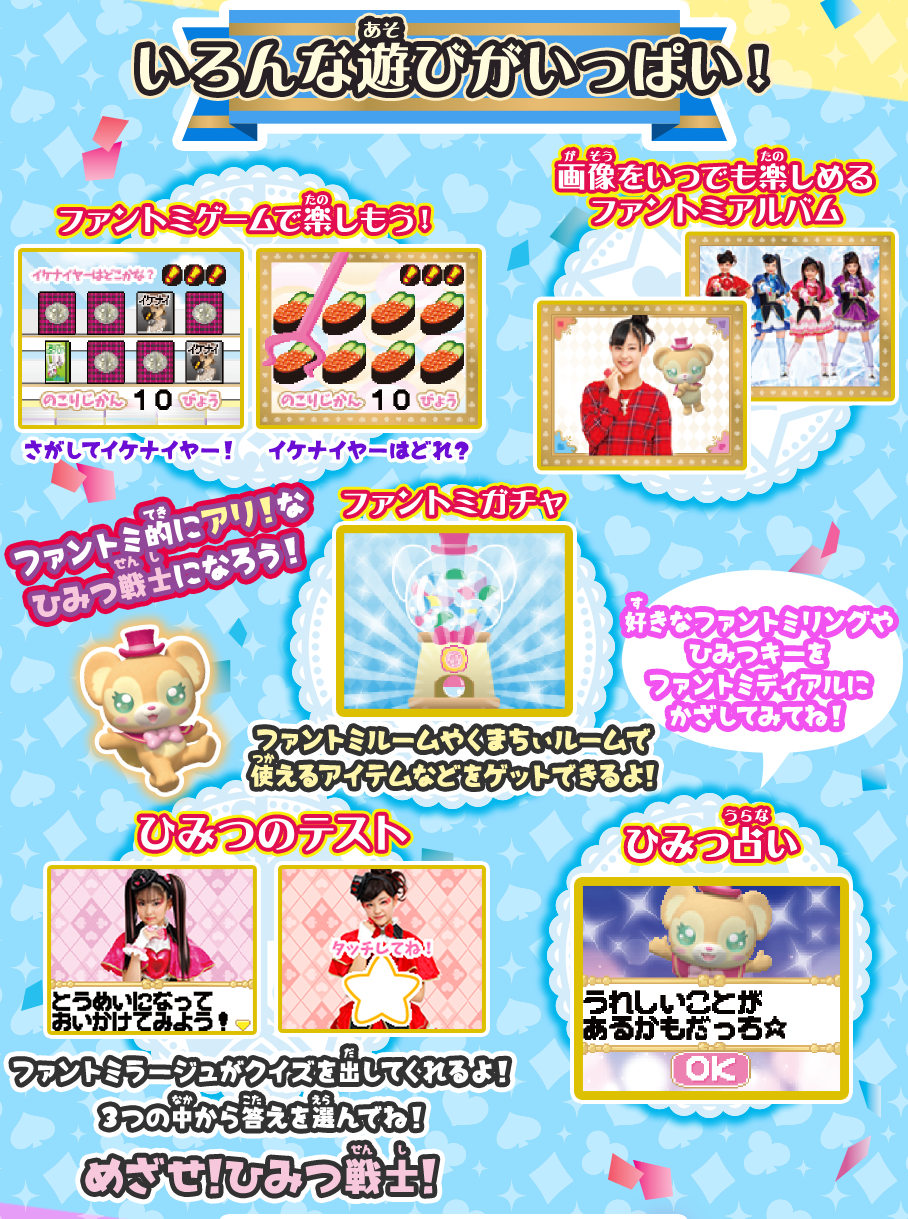 ファントミラージュの番組テーマ曲(ダイジョウブ 他)のメロディが楽しめる「ミュージックルーム」など、