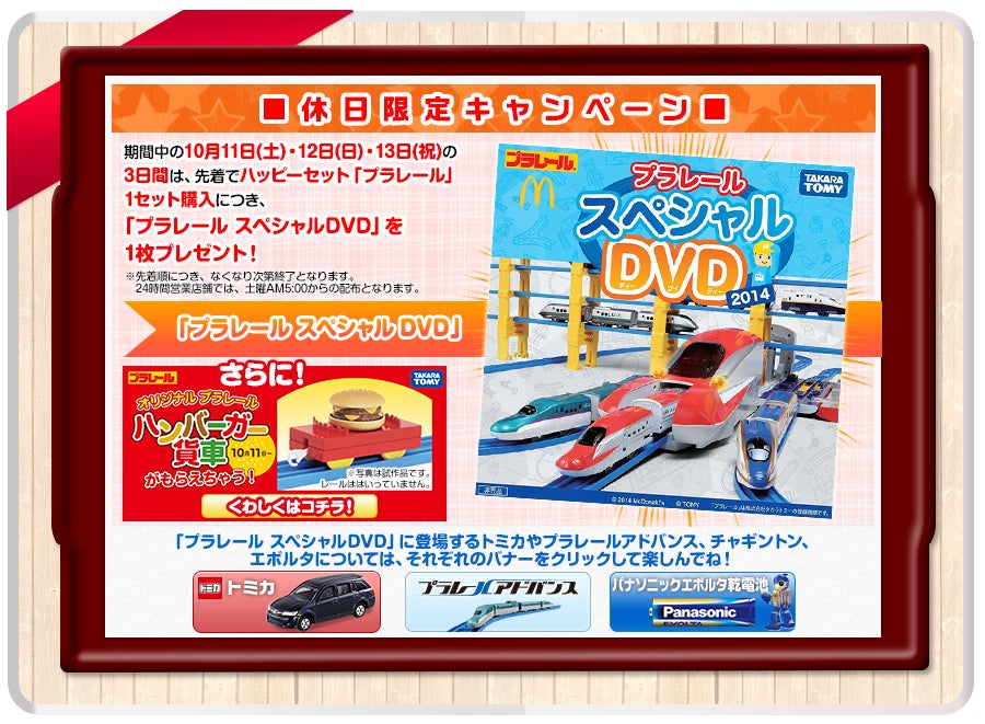 今年もマクドナルドハッピーセットにプラレールが登場!期間中にハッピーセットを買うとオリジナルの「ハッピーセットプラレール」がもらえるよ!