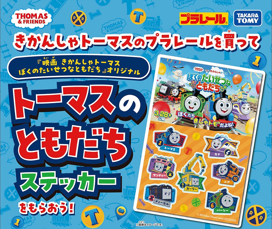 きかんしゃトーマスのプラレール商品を、1度に1,500円(税込)以上お買い上げいただいた方に、トーマスのともだちステッカーをプレゼント!