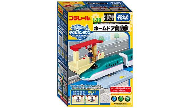 ■別売の「J-29 アクションタウン ホームドア開閉駅」とつなげることができ、車両が停車すると2つのアクションを一緒に遊べます。